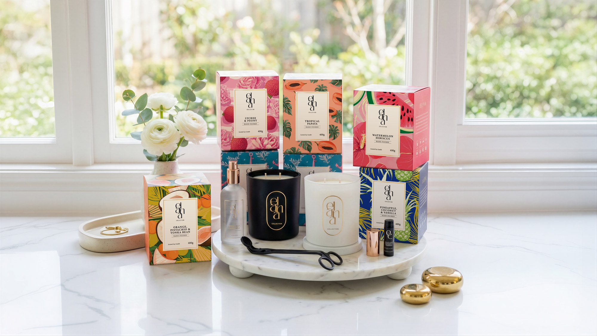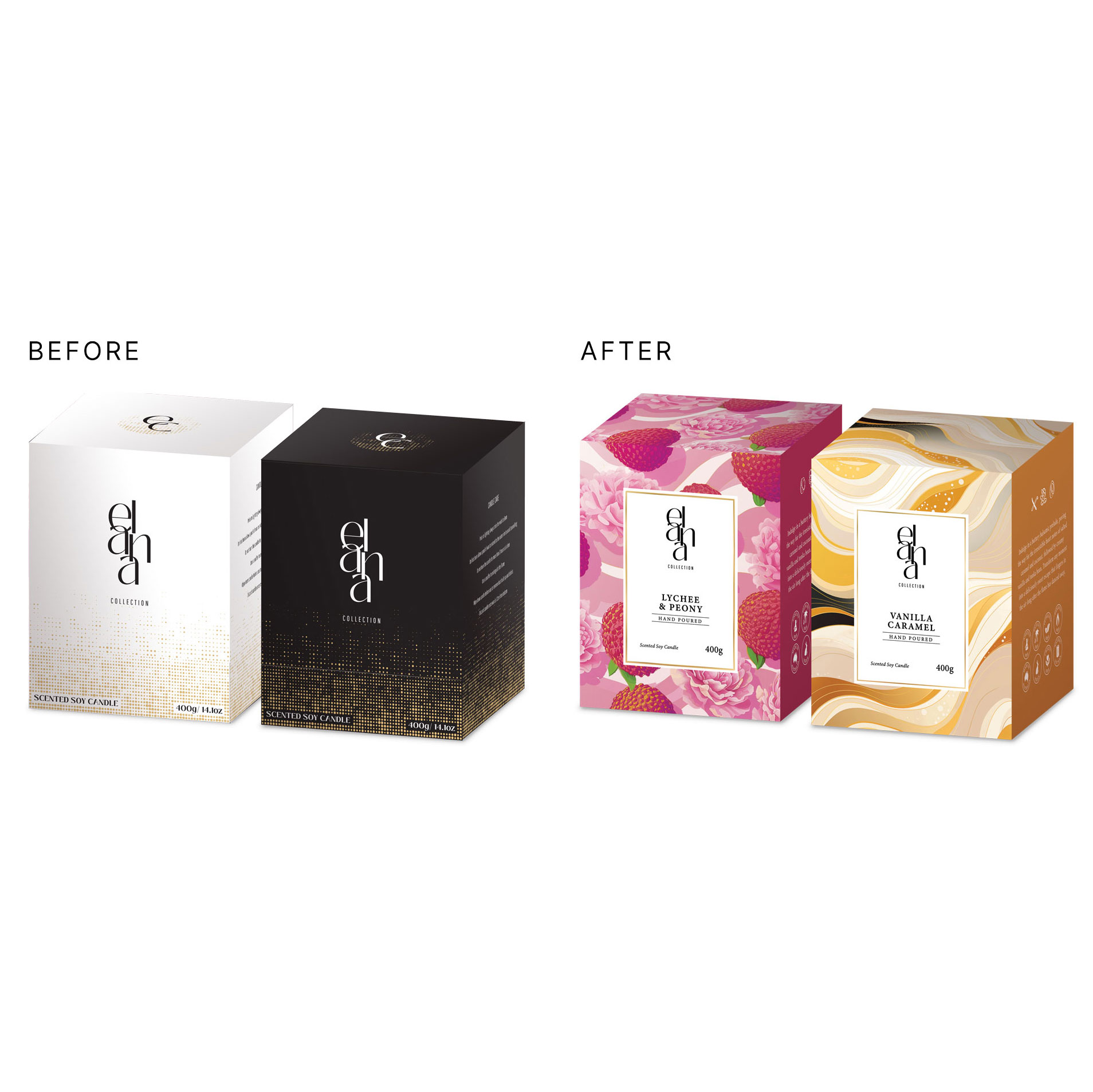 Elana Collection partnered with us to create a packaging for their handcrafted range of candles and diffusers that embody sophistication, beauty and charm.